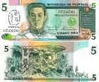 Филиппины 5 писо. 1989 год.